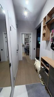 В квартире сделан качественный евроремонт. Приятная цветовая гамма и современные материалы делают проживание здесь комфортным. Установлена вся необходимая мебель и техника, поэтому можно сразу въехать и наслаждаться жизнью. Планировка квартиры удобная и функциональная, совмещенный санузел оснащен современной сантехникой.