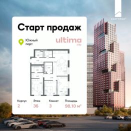 Старт продаж! Продаётся 3-комнатная квартира от застройщика ГК "КОРТРОС" в жилом комплексе бизнес-класса ULTIMAcity. Квартира расположена на 36 этаже 52 этажного корпуса 2. Общая площадь 98,10 м². Без отделки.
