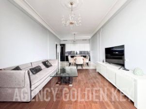 РЕМОНТ: Прекрасная квартира с качественным дизайнерским ремонтом. Состояние нового ремонта. Кухня со всей встроенной техникой. Полы паркет и керамогранит. Сантехника и техника европейская. Канальная система кондиционирования с приточной. Двери высокие Италия. Квартира продается полностью мебелирована!