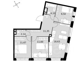 - 3 изолированные комнаты 11,7 / 11,6 / 9,5 кв.м.