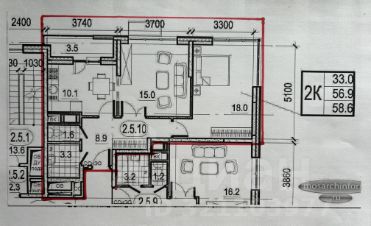 Общая площадь составляет 56,9 кв.м. из которых 33 кв.м жилая, а 10,1 кв.м. кухня. санузел раздельный, имеется балкон. Планировка изолированная. В квартире выполнен косметический ремонт. Остается встроенная кухня от Лемана Про.