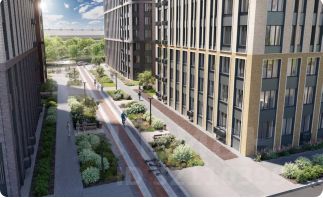Каждый двор в апарт-комплексе имеет свою закрытую от машин территорию и сквозной проход между корпусами. На территории проекта предусмотрены детские и спортивные площадки, спроектированы зоны отдыха.