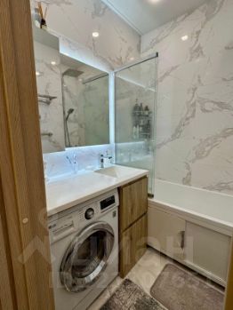 • Бытовая техника и мебель: стиральная машина LG с функцией сушки, кондиционер Hitachi, 4 шкафа в потолок и 2 подвесные консоли, выполненные под заказ.