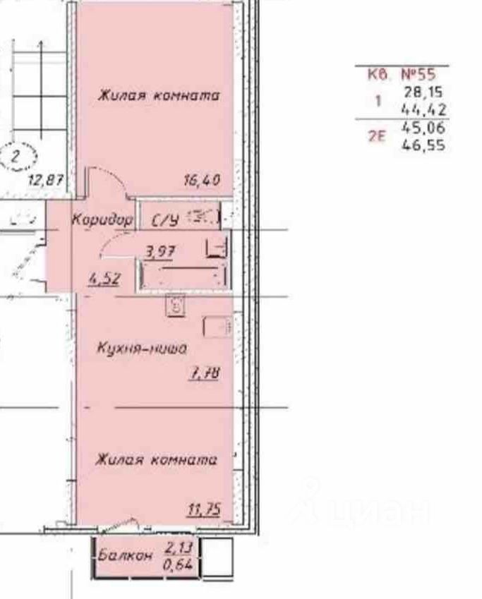 * Пол: керамическая плитка или ламинат (на выбор застройщика).