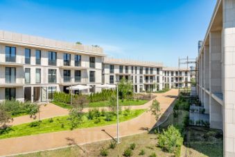 "River Residences - камерный комплекс резиденций расположенный на территории заповедника Серебряный Бор, на берегу Москвы-реки. Фасады резиденций выполнены в неоклассическом стиле и украшены декоративными панно, вдохновленными темой академической гребли.