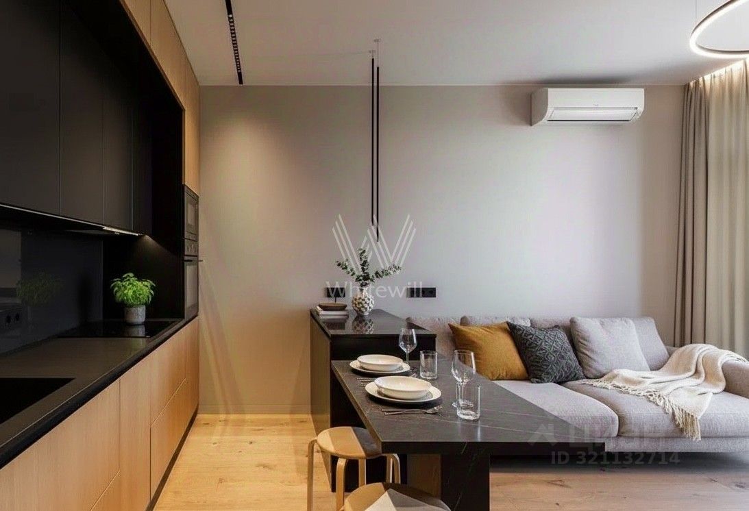 Квартира с двумя спальнями в комплексе городских резиденций Spires, площадью 72 м² расположена на седьмом этаже в корпусе 2. Выполнена отделка по индивидуальному дизайн-проекту с использованием премиальных материалов. На полу выложены инженерная доска и керамогранит. Установлена система индивидуального кондиционирования. Квартира укомплектована мебелью и бытовой техникой Haier.