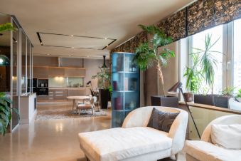 Идеальное пространство для комфортной семейной жизни: большая кухня -гостиная объединена с зоной отдыха у камина и уютным рабочим кабинетом - идеальное место для семейных вечеров и удаленной работы. В квартире две полноценные спальни, включая мастер-спальню с приватной атмосферой, собственной гардеробной и угловым остеклением, которое наполняет комнату естественным светом и открывает лучшие виды на Москву. Планировочное решение и площадь позволит без труда выделить еще одну зону под третью спальню.