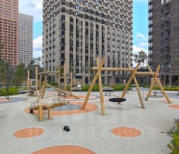 ЖК Второй Нагатинский. Благоустроенная территория, двор без машин.