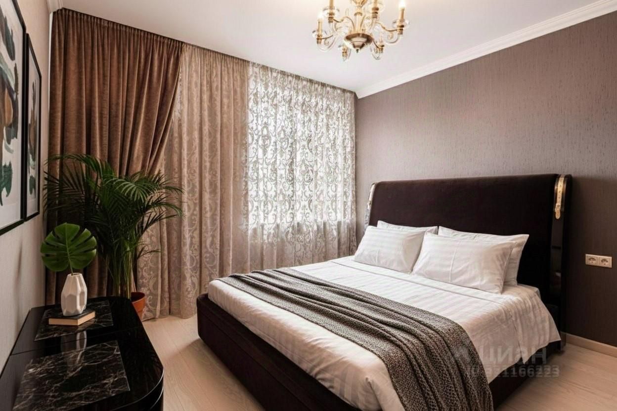 Продается просторная трехкомнатная квартира в Москве на улице Хачатуряна, 12к1. Общая площадь квартиры составляет 90.8 кв. м, жилая площадь — 58.7 кв. м (гостиная — 24,8 кв.м., детская — 19,4 кв.м., спальня — 14,5 кв.м., кухня — 11.4 кв. м. Квартира расположена на 12 этаже 20-этажного монолитного дома, построенного в 2001 году. Высота потолков — 2.9 метра, что добавляет ощущение простора и света.