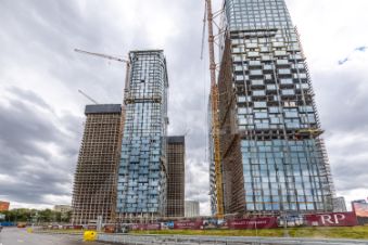 Архитектурное бюро ADM создало уникальные фасады, которые придают башням эффект парения. Комплекс состоит из пяти небоскребов с закрытой территорией home park и открытой торговой галереей.