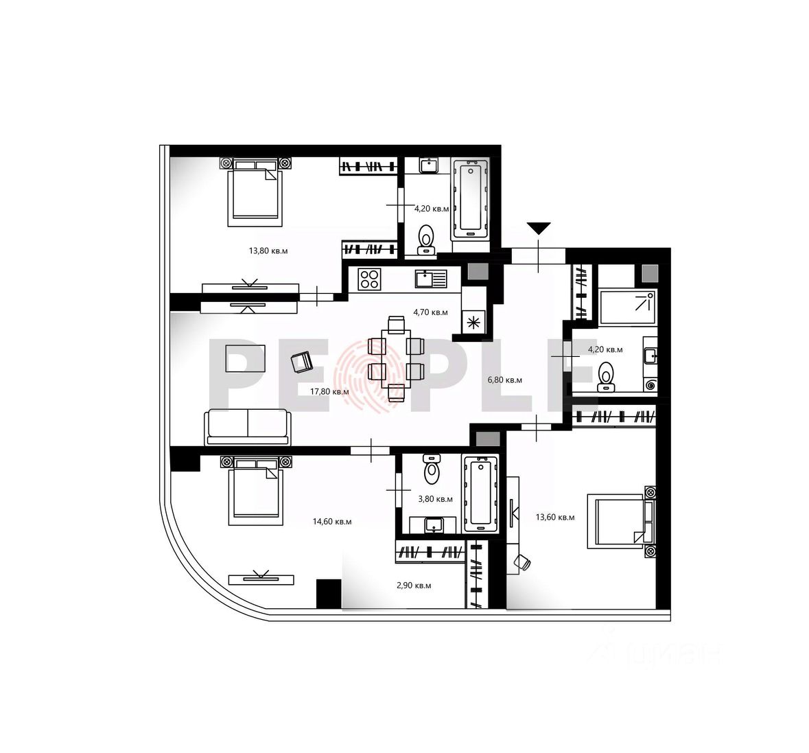 В жилом комплексе премиум-класса "River Park Кутузовский" предлагается к продаже 4-комнатная квартира: