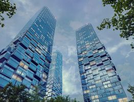 Архитектурное бюро ADM создало уникальные фасады, которые придают башням эффект парения. Комплекс состоит из пяти небоскребов с закрытой территорией home park и открытой торговой галереей.