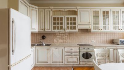 Квартира с четырьмя спальнями общей площадью 164 м² в комплексе бизнес-класса "Эльсинор" на четвёртом этаже. Выполнена отделка с использованием натуральных материалов — на полу выложен дубовый паркет и плитка Emperador, столешница на кухне изготовлена из мрамора.