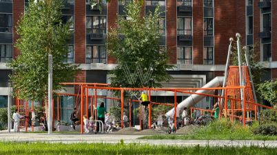 На территории комплекса площадью четырнадцать гектаров расположена ландшафтная прогулочная зона, детские игровые площадки и скейтпарк. Для резидентов доступен прямой выход на шестьсот метровую благоустроенную набережную с парковой зоной от архитектурного бюро Wowhaus.