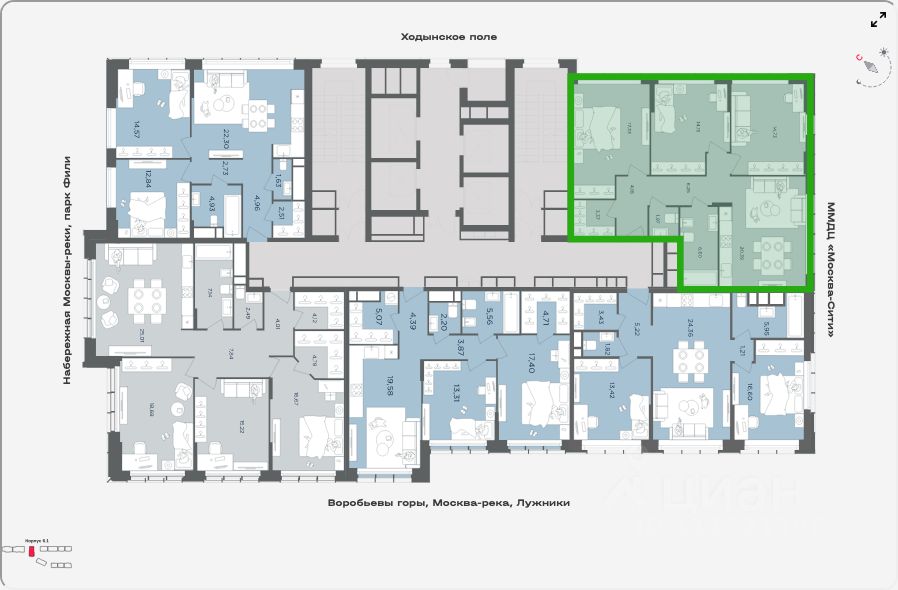 В пешей досягаемости - ТРЦ "Афимолл Сити", ТРЦ "Филион", ТРЦ "Европейский", World Class, а также вся инфраструктура ММДЦ "Москва-Сити".