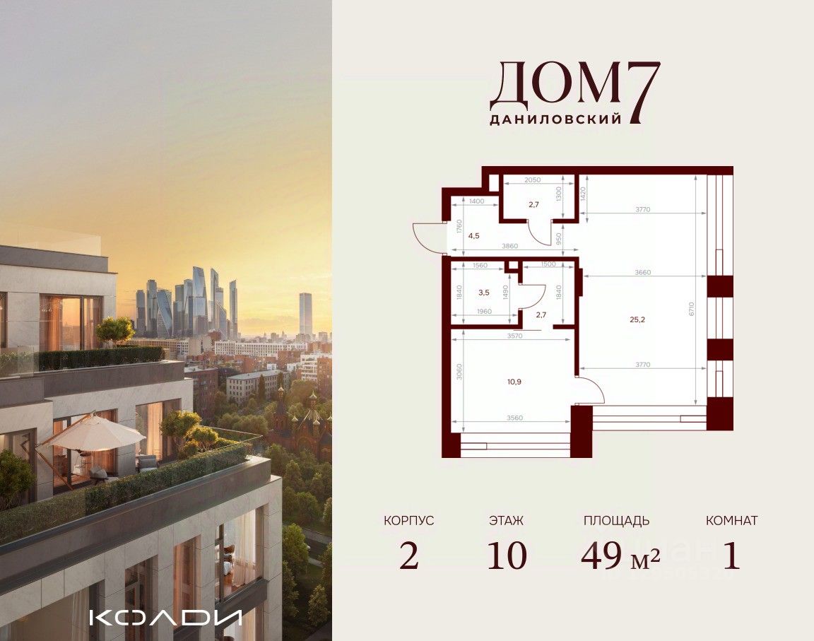 Продается 1-к квартира общей площадью 49.00 кв.м на 10 этаже в жилом квартале премиум-класса "Дом 7 Даниловский".