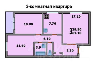 3 изолированные комнаты:17.1, 11.6 и 10.8 кв.м. — достаточно места для всех членов семьи.