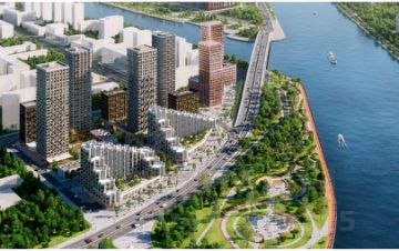 На первых этажах предусмотрены коммерческие помещения. Проектом предусмотрено благоустройство набережной и создание 4-километровой парковой зоны, и первого в столице водного парка.