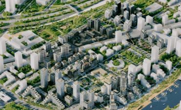 Жилой квартал Шагал представляет собой уникальное соседа во разных форматов застройки: от таун-хаусов до небоскребов. Район спроектирован на основе принципе 15-минутной доступности необходимой инфраструктуры и продуманных прогулочных маршрутов.