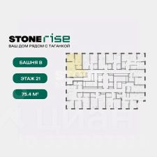 Старт продаж квартир в ЖК бизнес+ класса от девелопера STONE В продаже функциональная и светлая двуспальная квартира с кухней-гостиной и двумя спальнями для реализации любого дизайн-решения, идеально подходящая молодым парам, которые только планируют пополнение, а также небольшим семьям, где малыш уже подрастает. Квартира расположена в камерном низкоэтажном жилом комплексе бизнес+ в одной станции от кольца. STONE Rise находится в уникальной точке с быстрым доступом ко всем ключевым локациям Москвы. Жилой комплекс располагается на границе Таганского района в одной станции от Кольцевой линии метро и в 8 минутах от Садового кольца. Близость к ЦАО обеспечивает выезды на основные магистрали. В 3 минутах от комплекса располагается новый ТПУ Серп Молот, которые объединяет 2 линии метро и МЦД. - 3 мин. м. "Римская", "Площадь Ильича" - 3 мин ТПУ "Серп и Молот", МЦД-2, МЦД-4 - 2 станции на метро до ГЭС-2 и Третьяковки, до Чистых прудов и Сретенского бульвара по салатовой - 10 минут пешком до набережной Яузы и 20 минут до трех разных парков. Архитектура Архитектурный проект разработан московским бюро WALL, известным работой над премиальными жилыми и офисными зданиями. Фасады домов выполнены из бетонной плитки серого и лого м изумрудного оттенков, а также металлических кассет. Вход в комплекс осуществляется через единое гранд-лобби. Здесь будут расположены кофейня, почты с локерами, а также комфортная гостиная с мягкой мебелью. В каждом корпусе расположены лаунж-зоны с естественным освещением в зоне лифтов. Благоустройство Территория комплекса полностью закрыта для машин и случайных посетителей. В центре - прогулочная аллея с дизайнерским освещением и местами для отдыха. В комплексе также обустроена площадка для выгула собак. Маршруты движения внутри двора продуманы для удобства пеших прогулок. Инфраструктура жилого комплекса На первых этажах комплекса расположены кафе, магазины, фитнес-студия и другие сервисные объекты. Двухуровневый подземный паркинг с возможностью выбора стандартных, увеличенных или семейных мест. Для удобства жителей предусмотрены лапомойки, келлеры, места для временного хранения велосипедов и самокатов. В STONE Rise также спроектировано многоуровневое пространство для жителей: - Бизнес-гостиная и детская-игровая, многофункциональное цифровое пространство - Благоустроенная общественная терраса с панорамными видами STONE - девелопер коммерческой и жилой недвижимости классов бизнес и премиум в Москве с 19-летним опытом. С 2022 года занимает лидирующую позицию на офисном рынке (рейтинг РБК). Сегодня в портфеле девелопера представлено 3 млн кв. м построенных, строящихся и проектируемых объектов, из которых более 1 млн кв. м находятся в стадии строительства. Компания имеет самый масштабный проектный портфель офисной недвижимости класса А на московском рынке (данные NF Group) и возглавляет топ-6 устойчивых девелоперов согласно исследованию F Research от Forbes. В 2023 году частью стратегии по развитию компании стала диверсификаци