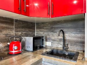 - Просторная кухня (укомплектована современной техникой: посудомойка, варочная панель, духовой шкаф, СВЧ)
