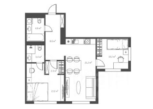 - Просторная гостиная-кухня — идеально для жизни и общения.