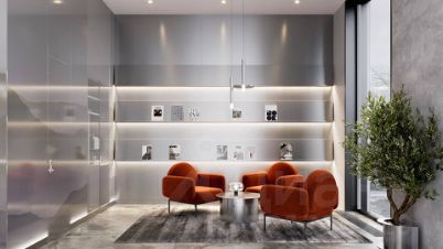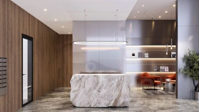 - лучшие в комплексе дизайнерские интерьеры лобби на первом этаже, выполненные по проекту Blank Architects. На этаже не более 5 квартир