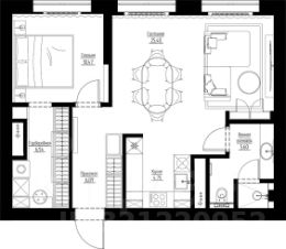 Функциональная планировка: гардеробная, спальня, кухня-гостиная, 1 ванная комната.