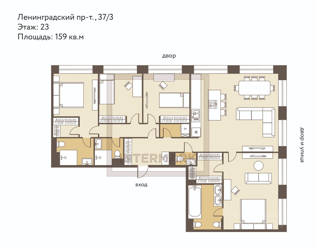 ID 64946: ЖК Prime Park. Новинка в ЖК Prime Park в районе Ленинградского проспекта 5-комнатная квартира со свежим актуальным эстетичным интерьером, новой мебелью и бытовой техникой.