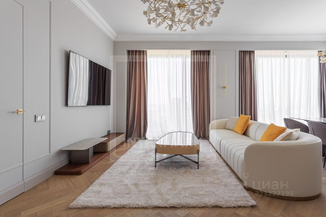 Удобная планировка: кухня-гостиная, 4 спальни, 4 с/у, холл, вместительные гардеробные. В квартире установлена люксовая итальянская новая мебель, кухня укомплектована техникой премиум-класса Miele. Текстиль, зеркала, освещение - всё продумано до мелочей и для комфортного и лёгкого переезда.