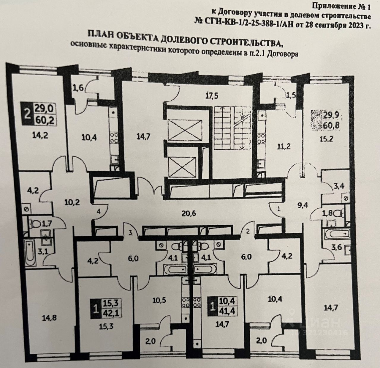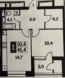 1-комнатная квартира с кухней-гостиной в корпусе 1 секция 2 без отделки, площадью 41,4м2 1 корпус секция 2 в новом ЖК бизнес-класса с благоустроенной дворовой территорией.