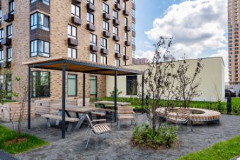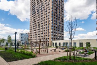 Дом оснащен четырьмя грузовыми лифтами, поэтому проблем с подъемом на верхний этаж не возникнет. На территории комплекса предусмотрена многоуровневая парковка, что решает вопрос с местами для автомобилей. Дом новый, поэтому в отличном состоянии и не требует капитальных вложений.