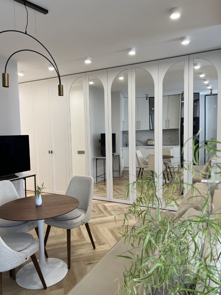 В квартире выполнен дизайнерский ремонт. Просторная кухня идеально подходит для вечеров в кругу семьи и друзей. Совмещенный санузел оборудован современной сантехникой. Из окон открывается вид во двор, что обеспечит вам тишину и уют. Также есть балкон, где можно насладиться утренним кофе.
