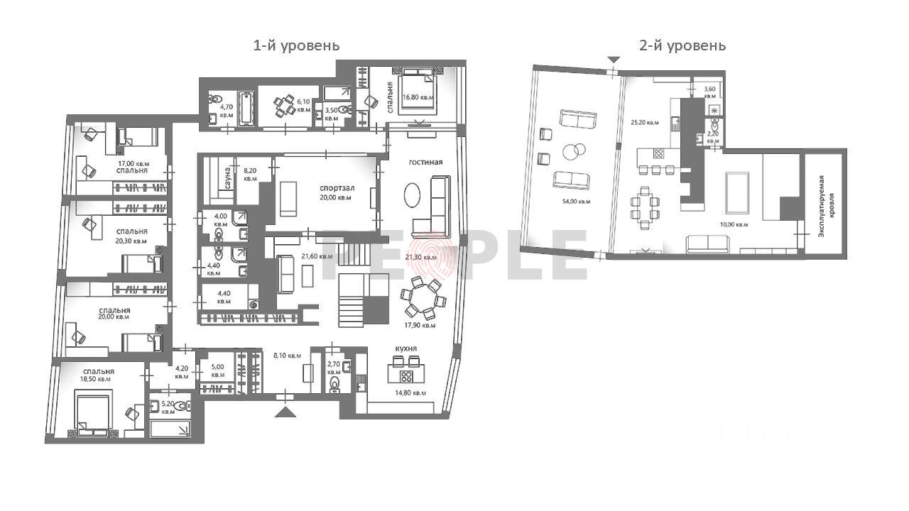 Эксклюзивный двухуровневый ПЕНТХАУС с 5 спальнями, камином и лифтом на 2 этаж. Общая площадь 380 м².