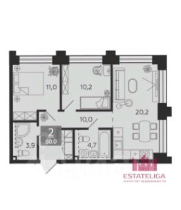 Id 55986. Продается Евро-трехкомнатная квартира в новом ЖК бизнес-класса.
