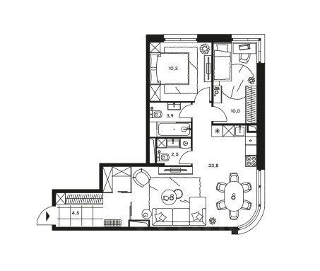 Формат евро-3 квартиры с объединенной кухней и гостиной