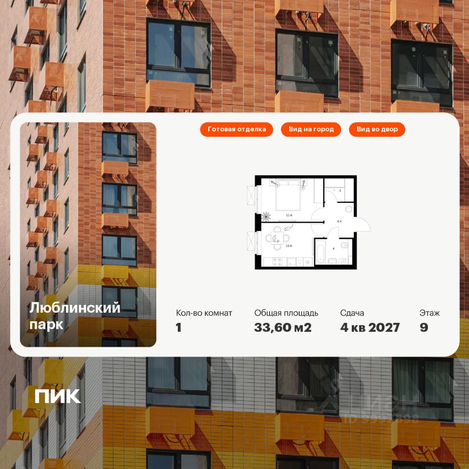 Продаётся 1-комн. квартира площадью 33,6 кв.м на 9 этаже 25 этажного дома (Корпус 17, Секция 1) проекта ПИК Люблинский парк. Светлый просторный подъезд на уровне земли, функциональная планировка, большие окна, c отделкой.