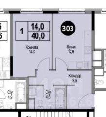 - кухня-гостиная 12,9 кв.м;