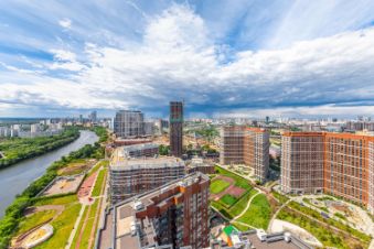 Обустроенная набережная Москвы-реки с смотровой площадкой, скейт парком и амфитеатром у воды
