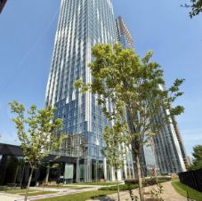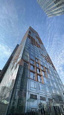 Квартира расположена на 38 этаже, из окон открывается панорамный вид на город. Высокие потолки и панорамные окна наполняют пространство квартиры естественным светом.