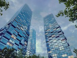 Архитектурное бюро ADM создало уникальные фасады, которые придают башням эффект парения. Комплекс состоит из пяти небоскребов с закрытой территорией home park и открытой торговой галереей.