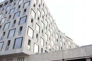 • Комплекс состоит из четырех корпусов трех кирпичных, расположенных на первой линии и Г-образного, с панорамным остеклением "французскими окнами".