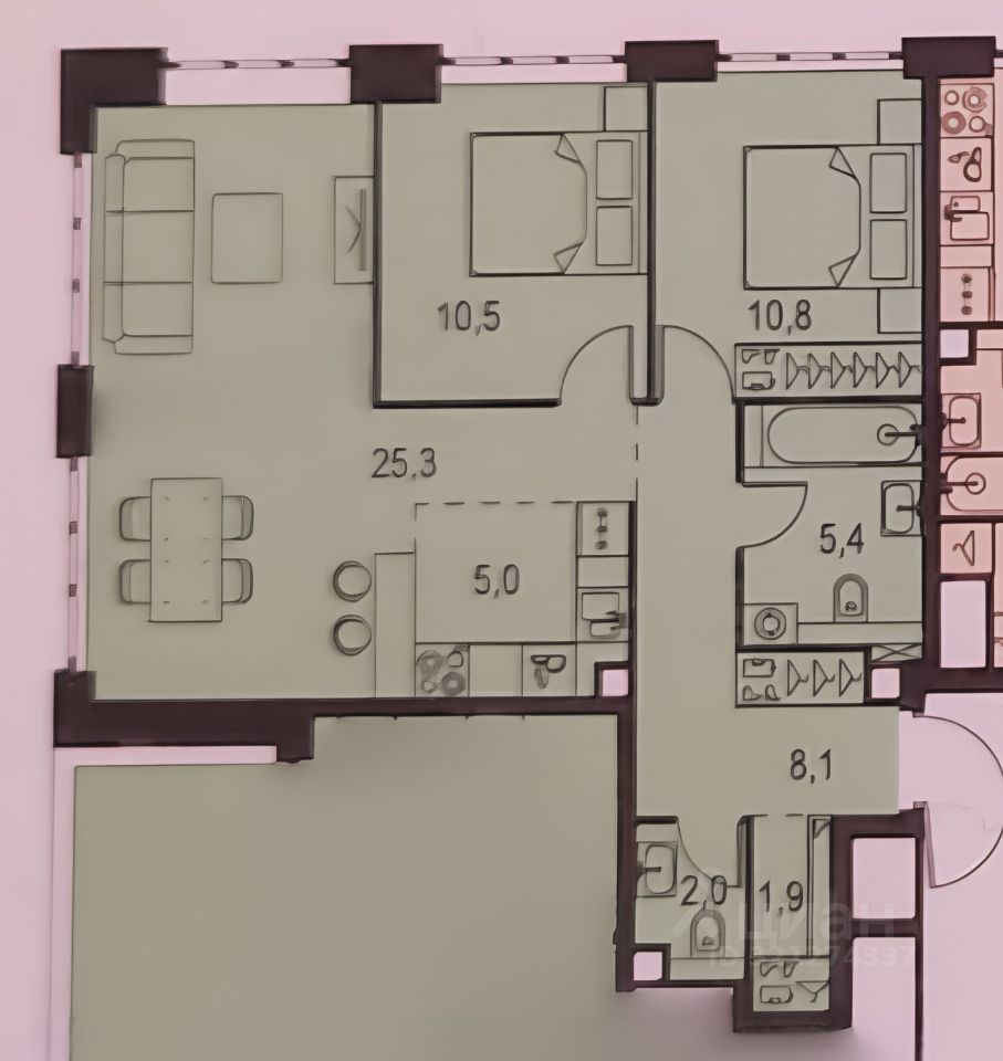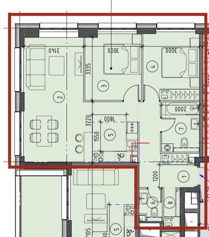 В квартире 5 больших окон, которые позволяют сделать функциональную планировку : 2 или 3 изолированные спальни, кухню-гостиную, 2 санузла , постиручную/ кладовку, прихожую.
