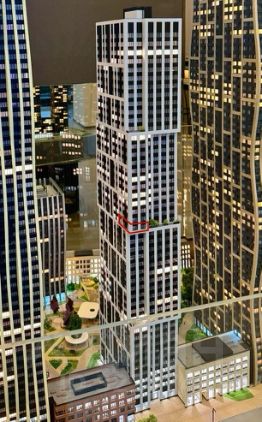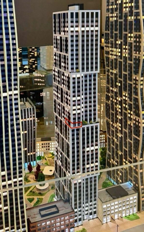 Общая площадью квартиры составляет 69 кв.м., расположенная на 24-ом этаже 47-ми этажного дома.