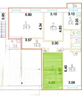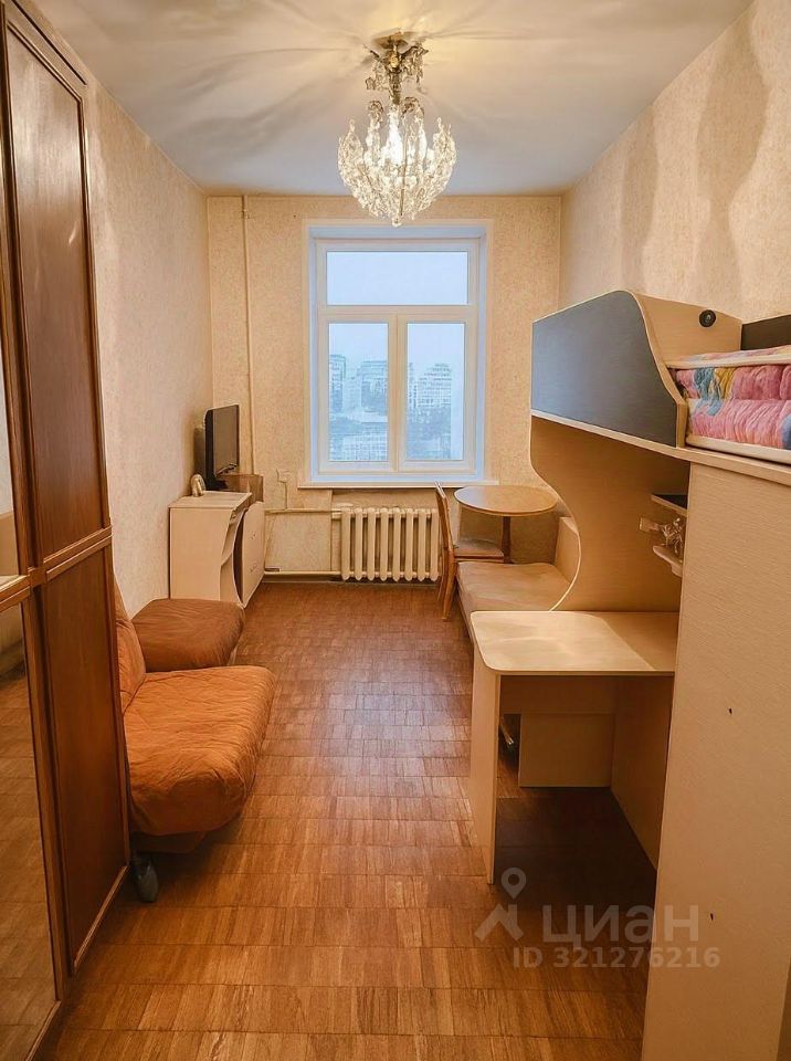 Продаётся изолированная комната 17 кв.м в просторной 4-комнатной квартире площадью 105,2 кв.м в кирпичном доме сталинского типа с высокими трёхметровыми потолками.