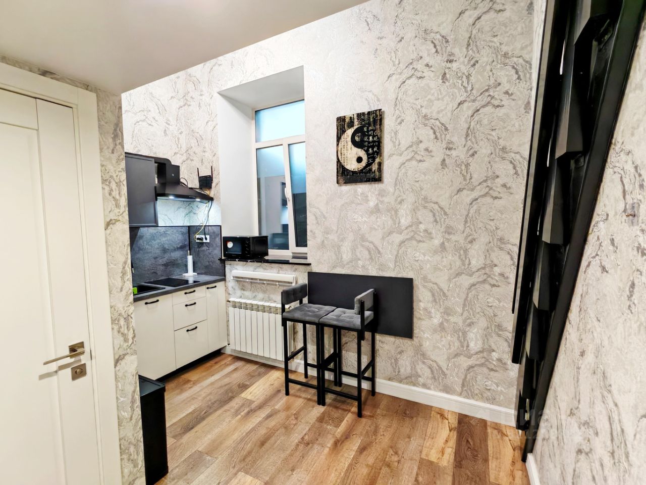 Двухуровневые апартаменты общей площадью 21,9 кв.м. Площадь первого яруса - 16,9 кв.м, второго - 5 кв.м. Высота потолков 4 метра. Полностью готова для проживания. Вся мебель и техника остается новому владельцу.
