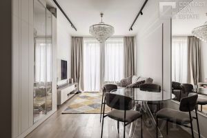 ЭКСКЛЮЗИВ! Просьба не беспокоить собственника, звоните в агентство! Представляем вашему вниманию эксклюзивную 3-комнатную квартиру площадью 103 м кв. в новом готовом премиальном ЖК Lucky на Пресне. Квартира готова к заселению. Планировочное решение воплощает в себе комфорт и высокое качество жизни, а элегантный интерьер разработан по индивидуальному дизайн-проекту с учетом всех современных требований. Планировка включает: - кухню-гостиную с зоной столовой, которая идеально подходит для семейных ужинов, званых обедов, встреч с друзьями и домашних киносеансов; - просторную мастер-спальню с ванной и гардеробной комнатой; - вторую спальню/кабинет, - гардеробную с винным шкафом, - постирочную зону, - удобную прихожую с гостевым санузлом. Уникальная особенность лота: высокие потолки 3,2 метра и панорамные окна с французскими балкончиками, благодаря чему пространство наполнено приятным и равномерным естественным светом. Окна выходят во внутренний благоустроенный двор — тишина и спокойствие гарантированы. В квартире выполнена премиальная дизайнерская отделка в стиле современной классики. На полу — инженерная доска из массива дуба. В комнатах установлена высококачественная мебель ведущих дизайнеров: BoConcept, Диваны Dienne (Mondoltalia), стол и стулья в гостиной Kartell by Philippe Stark. Кухня итальянского бренда Dada оборудована бытовой техникой Neff. В санузлах установлена премиальная сантехника Villeroy&Boch. *О ЖК:* Lucky — новый готовый жилой комплекс премиум-класса в Пресненском районе, в 200 метрах от станции метро "Улица 1905-го года". Проект квартала разработали ведущие профессионалы российских и международных архитектурных бюро. Территории закрыта для посторонних и находится под круглосуточной охраной. Собственная инфраструктура комплекса включает: кафе и рестораны, фермерские магазины, детский сад, образовательный центр, фитнес-зал и 25-метровый бассейн, художественные мастерские, школы изучения иностранных языков, спортивные студии и второй подогреваемый всесезонный бассейн на крыше. Качество и комфорт жизни владельцев квартир обеспечивает целый комплекс инженерных систем, включающих технологии очистки воздуха и воды. Оборудована система "Умный дом", которая позволяет устанавливать индивидуальные параметры температурного режима, влажности и других удобств. Для решения бытовых вопросов жителей работает Служба комфорта на ресепшн. Для авто предусмотрен современный просторный подземный паркинг с комфортным доступом на лифте. _Агентство состоит в ассоциации AREA_ [Лот #24036]