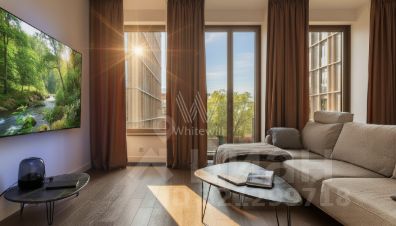Планировка: просторная гостиная, мастер-спальня с гардеробной и ванной комнатой, две спальни, две ванные комнаты, холл. Квартира укомплектована мебелью и бытовой техникой, установлена встроенная кухня. Окна выходят на две стороны света. Дополнительно можно приобрести два машино-места в подземном паркинге