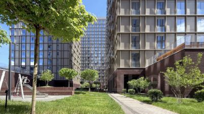 Главное о доме. Lucky — городской квартал на Пресне с ансамблем башен и камерных корпусов и дворами без машин. Фасады играют кирпичом и стеклом, а большие окна тянут внутрь свет и панорамы делового центра. На стилобате устроили прогулочные бульвары, садовые комнаты, детские и спортивные площадки. В лобби — мягкие зоны, стойка ресепшн и спокойные натуральные материалы, ощущение городского клуба считывается с порога. Внутри квартала работают общественные пространства для встреч и работы, есть фитнес-зона с бассейном и зонами восстановления. На первых этажах — кафе, пекарни и повседневные сервисы. Под землёй расположен многоуровневый паркинг с лифтовым доступом к корпусам.