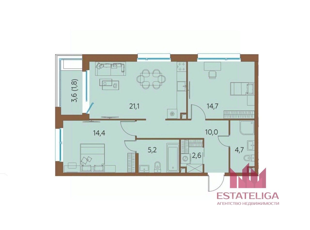 Остров 6, корпус 2. Вид во двор и на бульвар. Есть лоджия!
